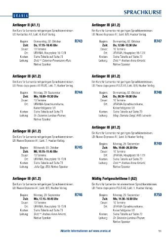 Ort: URANIA, Hauptplatz 16-17/II Kosten: Siehe Tabelle auf Seite 73