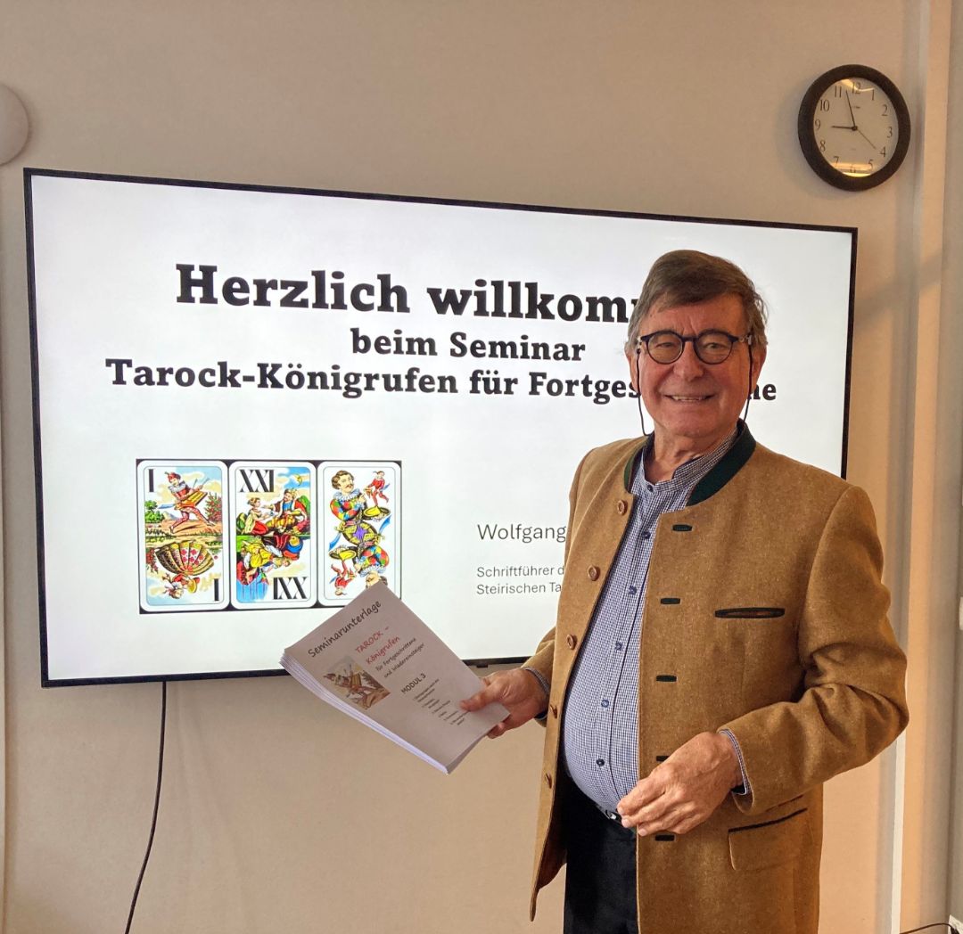 Die Grundkenntnisse der TeilnehmerInnen werden an zwei Tagen in vier Modulen vertieft. Mit grundlegenden Fragen wird die richtige Lizitation mit den erhaltenen Karten besprochen. Um ein Spiel auch zu gewinnen – allein oder mit Partner – bedarf es aber einer Strategie und einer entsprechenden Taktik von Spieler, PartnerIn und von den Gegnern, was in diesem Seminar gelehrt wird. Es wird viel Gelegenheit geben die einzelnen Spiele praktisch zu üben. Dieses Seminar basiert auf den Regeln des Steirischen Tarock-Cups.
